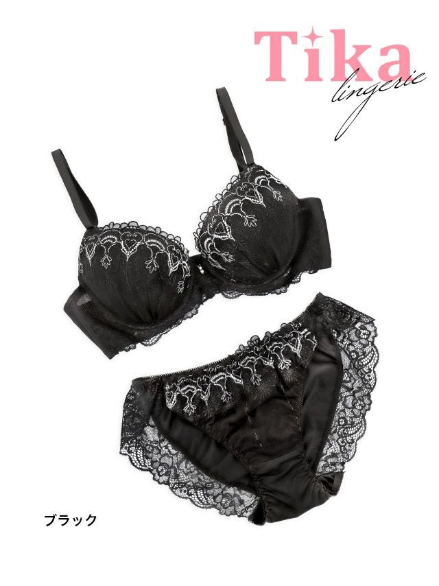 5. [勝負下着] エレガントレース刺繍ビジューカップブラジャー&ショーツ2点セット