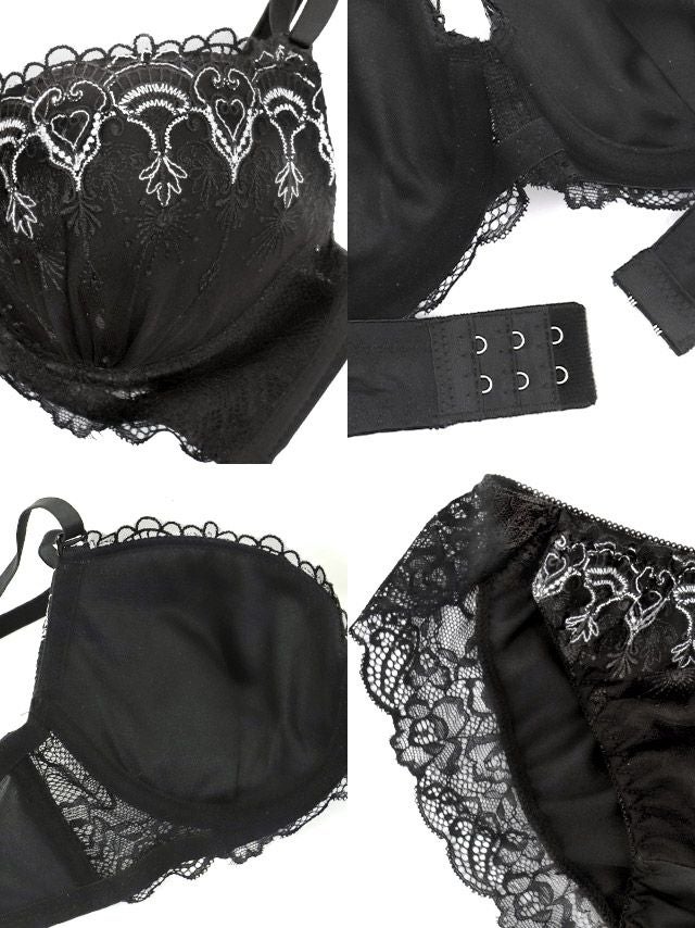 4. [勝負下着] エレガントレース刺繍ビジューカップブラジャー&ショーツ2点セット