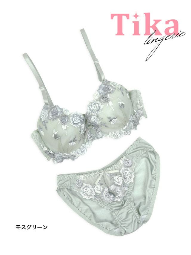 3. [勝負下着] クラシカルローズ刺繍カップブラジャー&ショーツ2点セット