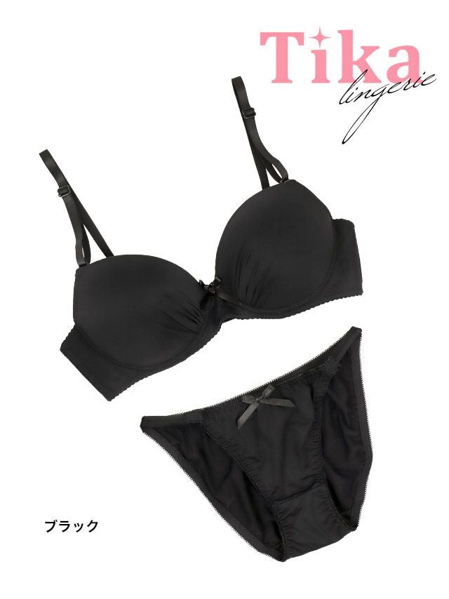 3. [勝負下着] シームレスリボンワンカラーカップブラジャー&ショーツ2点セット