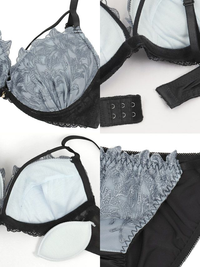 誘惑的な胸元にメイク♡ [勝負下着] リリー 刺繍 レース コード ワイヤー ブラジャー ショーツ Tバック 3点セット