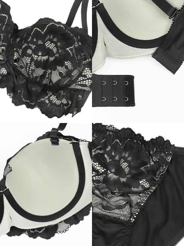 4. [勝負下着] フラワーレーシー リボン ハーフカップ ワイヤー ブラジャー ショーツ 2点セット