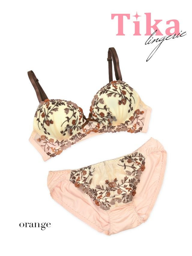 ドライフラワーデザインノンワイヤーカップブラジャー&ショーツ2点セット