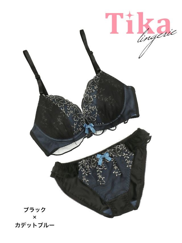 小花柄 シアーベール リボン ワイヤーカップ ブラジャー ショーツ 2点セットの詳細画像