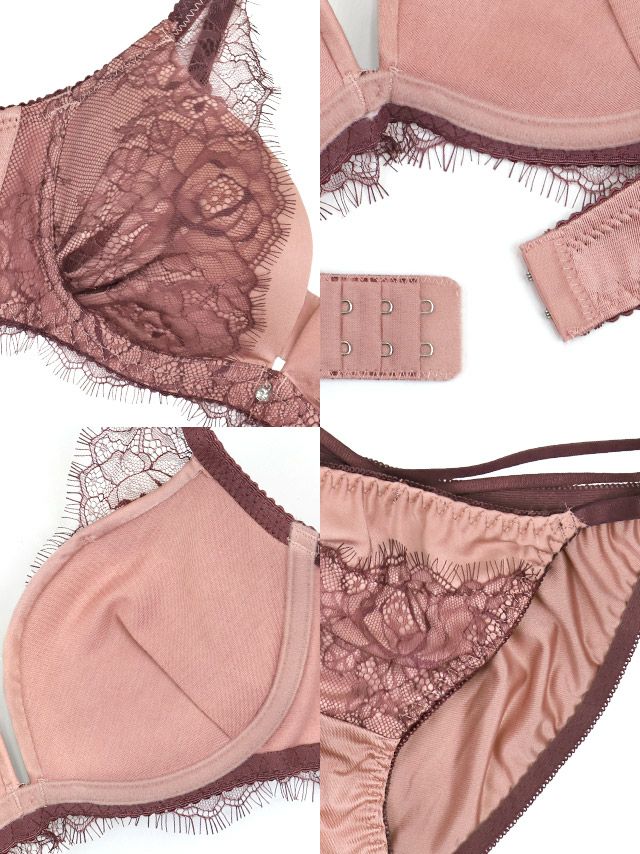 サテン アイラッシュレース レイヤード ワイヤー ブラジャー ショーツ 2点セットのカラー詳細