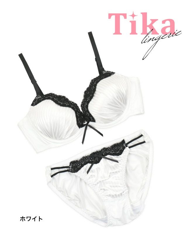 プリーツブラックレースリボンカップブラジャー&ショーツ2点セットのカラー詳細