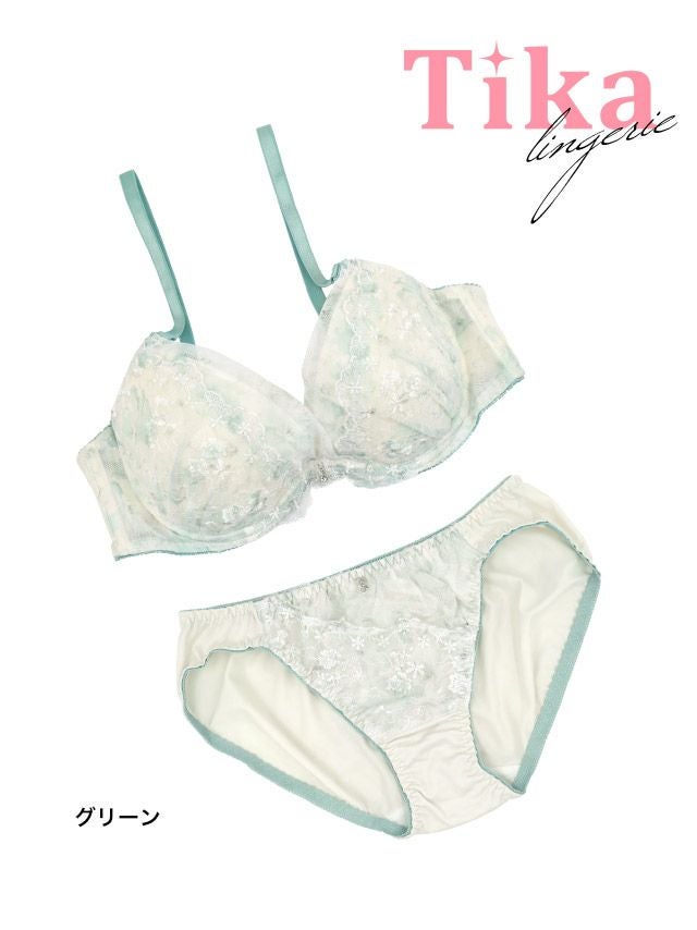 シアーベールを重ねたふんわり甘い1着♡ [勝負下着] 小花柄シアーレースブラジャー&ショーツ2点セット