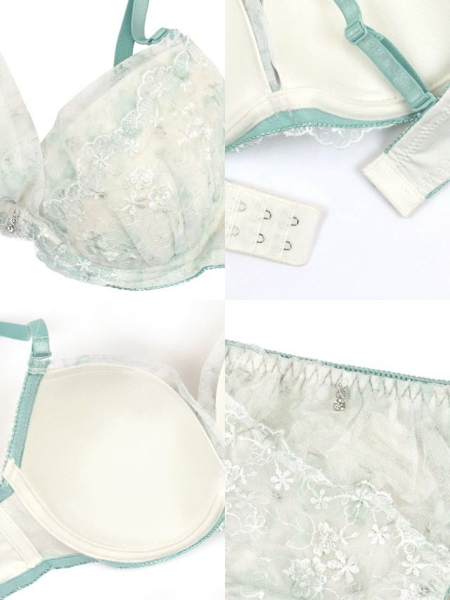 小花柄シアーレースブラジャー&ショーツ2点セットのフロントバック