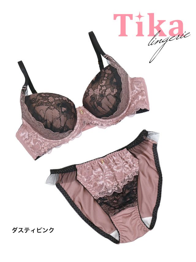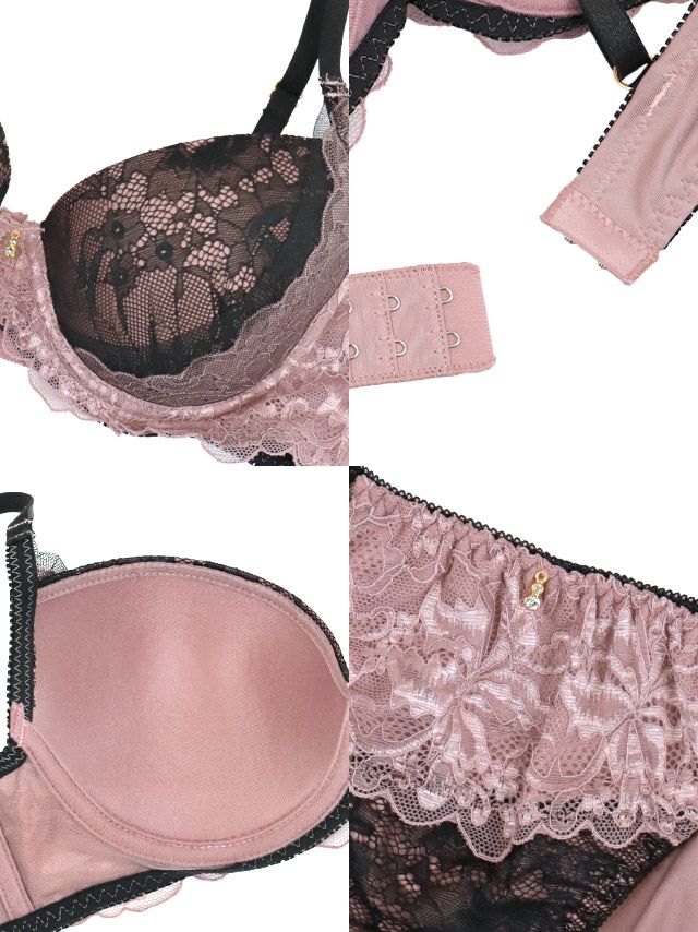 ビジューチャーム付きゴージャスフラワーレースレイヤードカップブラジャー&ショーツ2点セットのカラー詳細