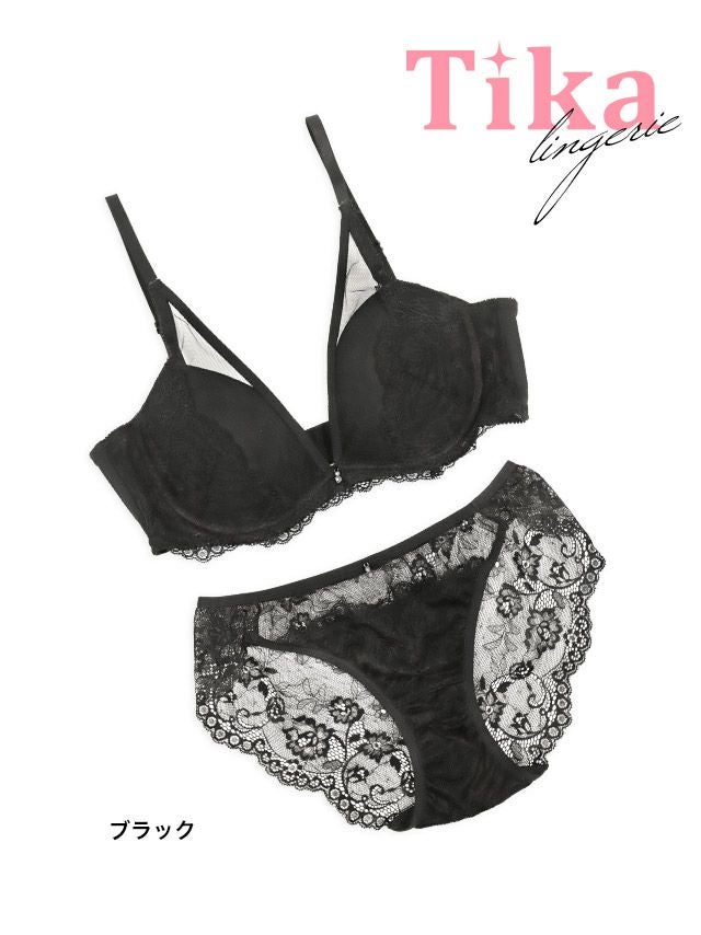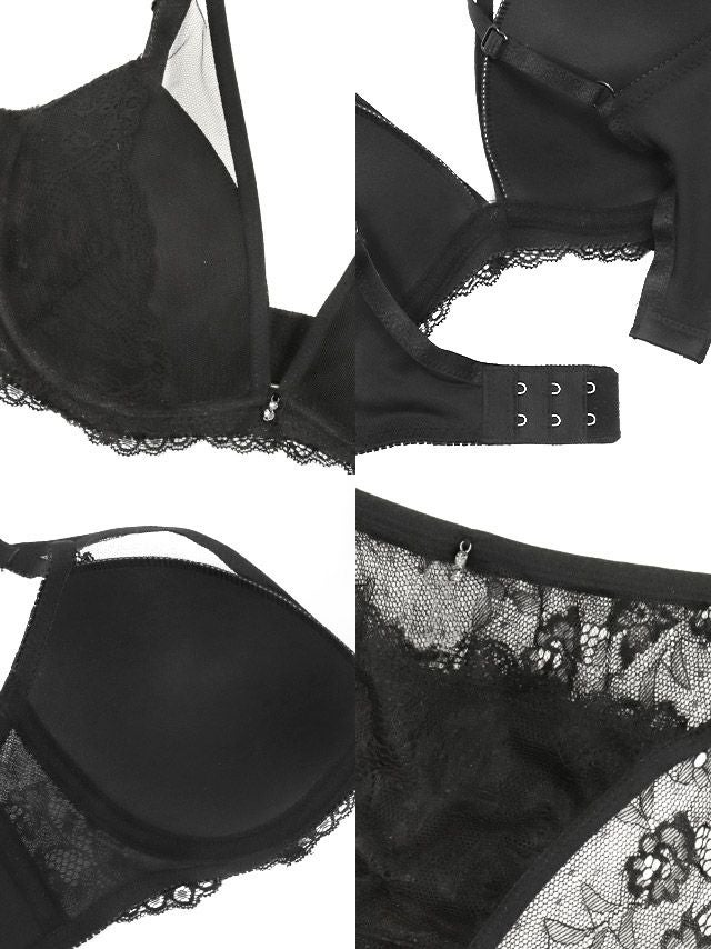シアーフラワーレースレイヤード脇高カップブラジャー&ショーツ2点セットの詳細画像