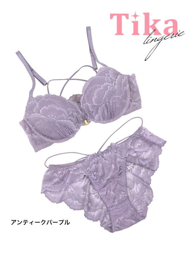 バックシャンランジェリー♪ [勝負下着] バッククロスデザインエレガントレースフロントホック脇高カップブラジャー&ショーツ2点セット
