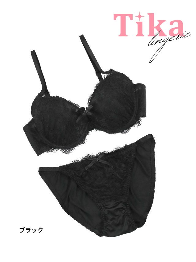 レース リボン ワンカラー ブラジャー ショーツ 2点セットの詳細画像 レース リボン ワンカラー ブラジャー ショーツ 2点セットの詳細画像