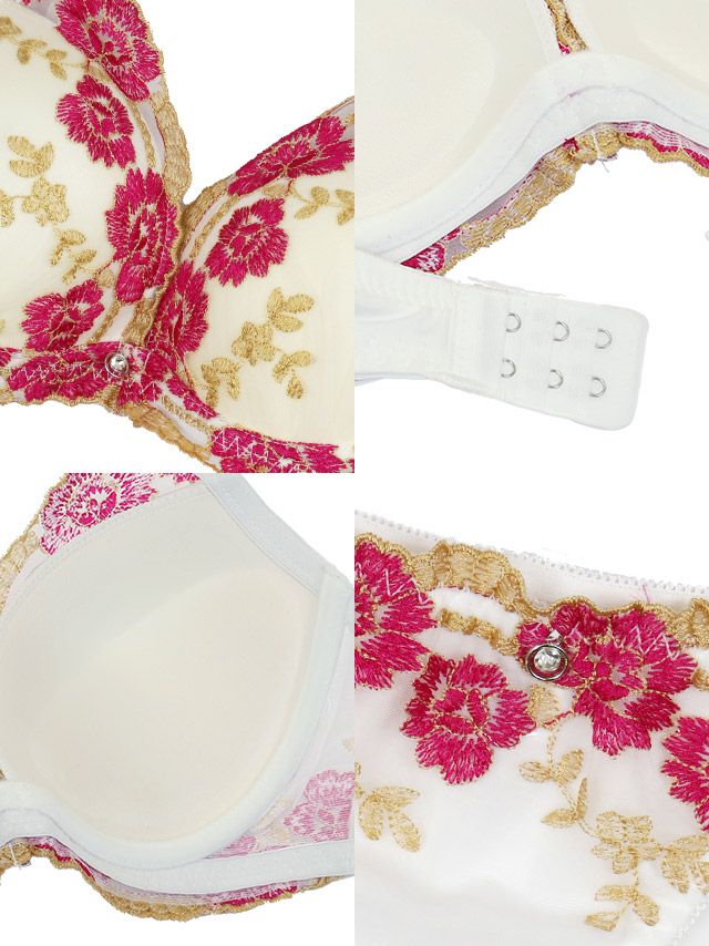 エレガントフラワー刺繍チャームブラジャー&ショーツ2点セットの詳細画像1