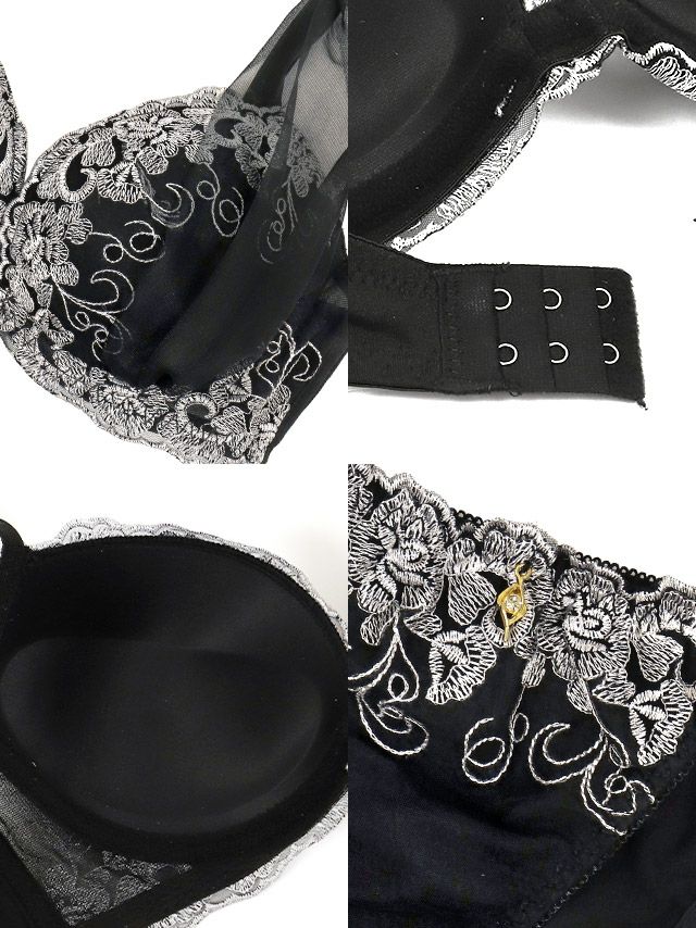 チュールベールエレガンス刺繍レース脇高カップブラジャー&ショーツ2点セットの詳細画像