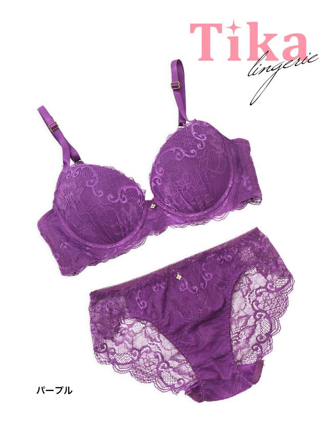 目を惹く鮮やかな紫とレースを全体に施した