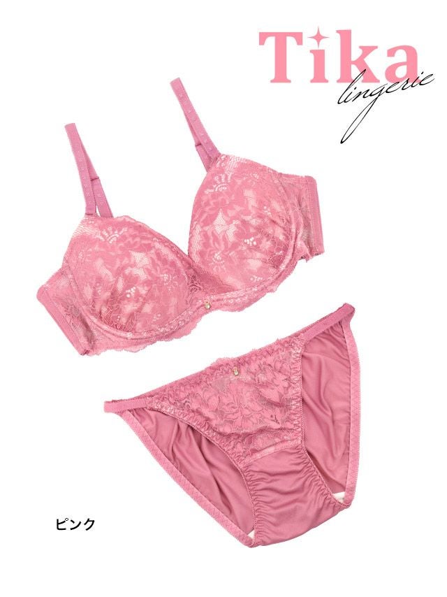 身に纏うだけで女子力UP♪ [勝負下着] ビジューチャーム付きエレガントフラワーレース脇高フルカップブラジャー&ショーツ2点セット