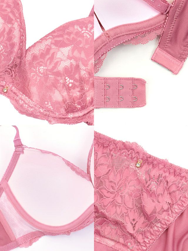 ビジューチャーム付きエレガントフラワーレース脇高フルカップブラジャー&ショーツ2点セットのイメージ画像3