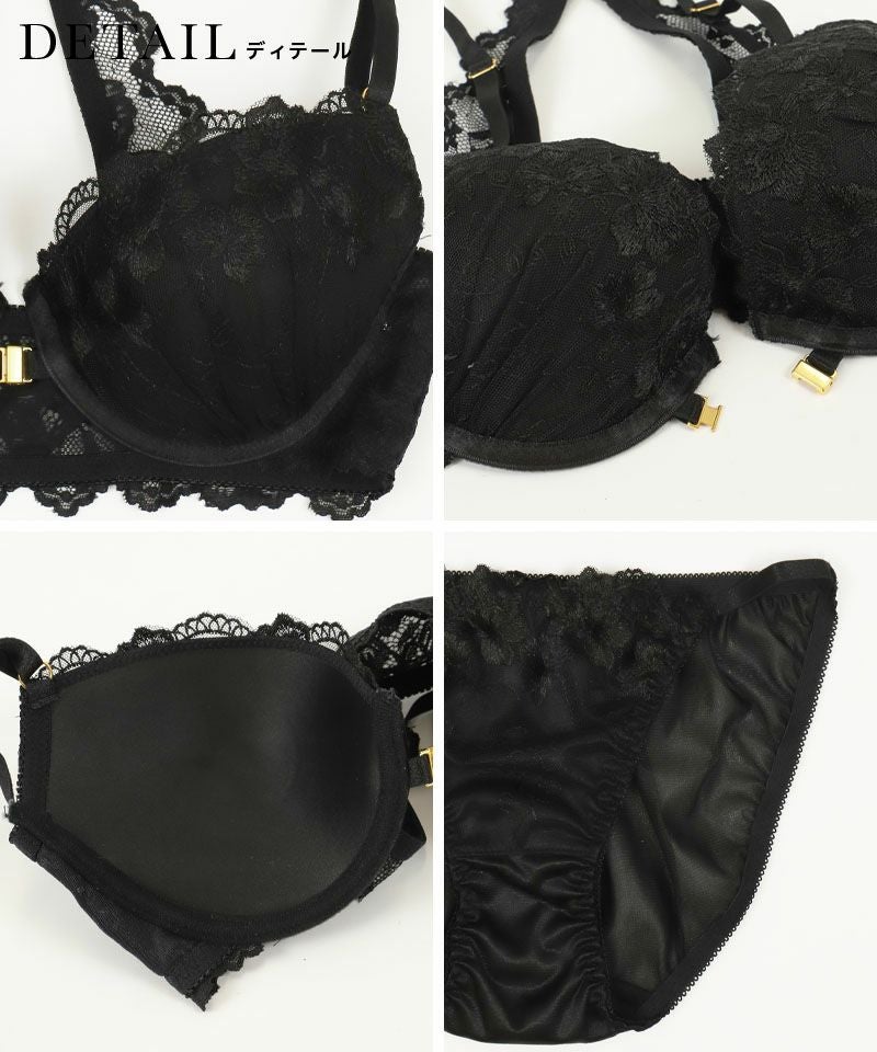 バックシャンレースフロントホックブラジャー&ショーツ2点セットの詳細画像1