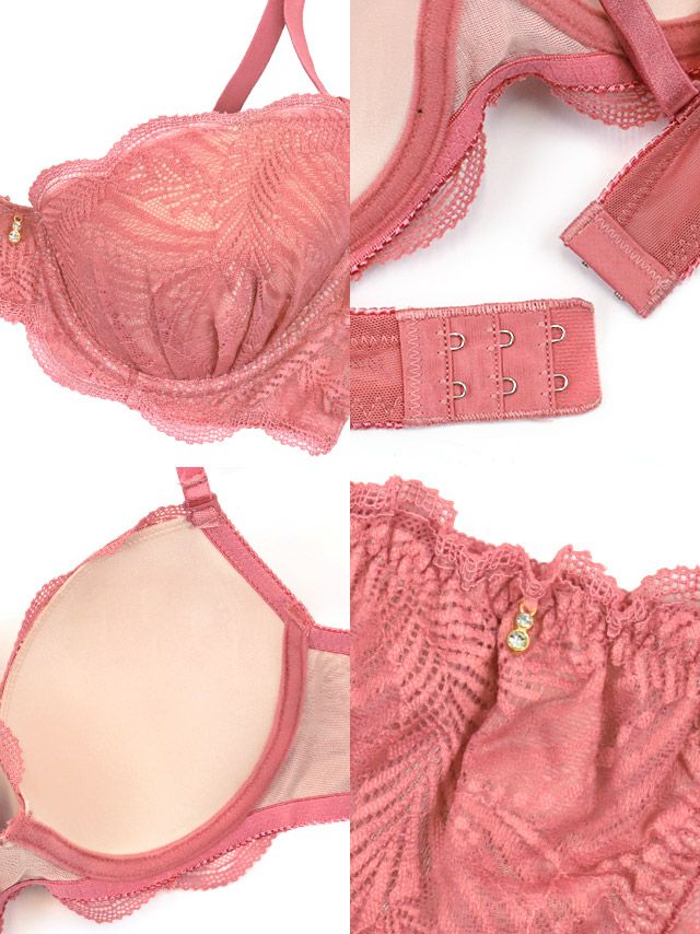 ビジューチャーム付き総レースカップブラジャー&ショーツ2点セットの詳細画像
