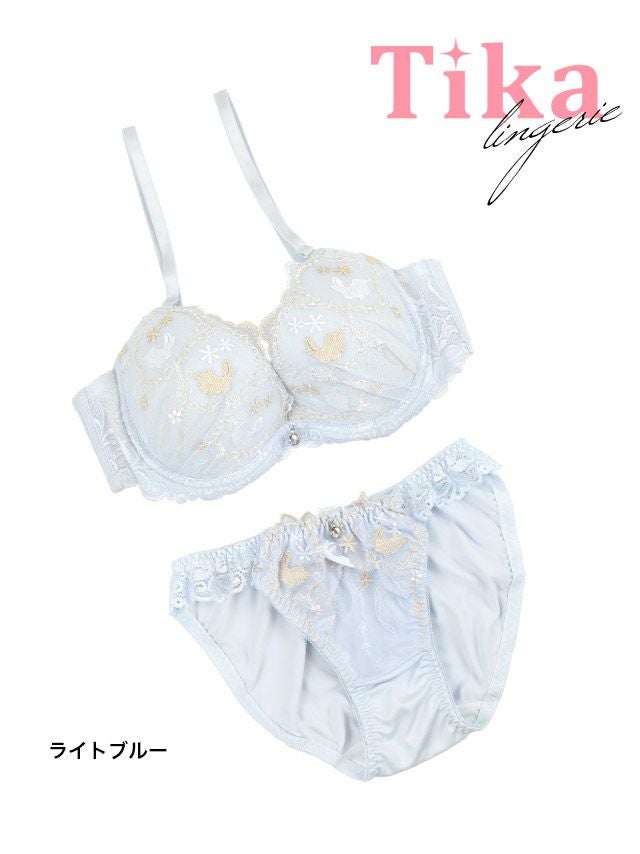 ピュアかわランジェリー♪ [勝負下着] ロマンティック刺繍レースカップブラジャー&ショーツ2点セット