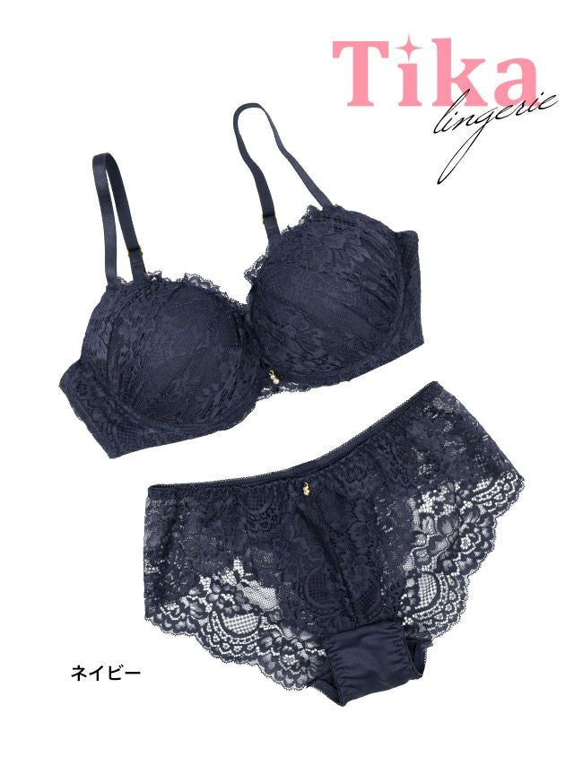 5. [勝負下着] 総レースフラワーソフトワイヤーカップブラジャー&ショーツ2点セット
