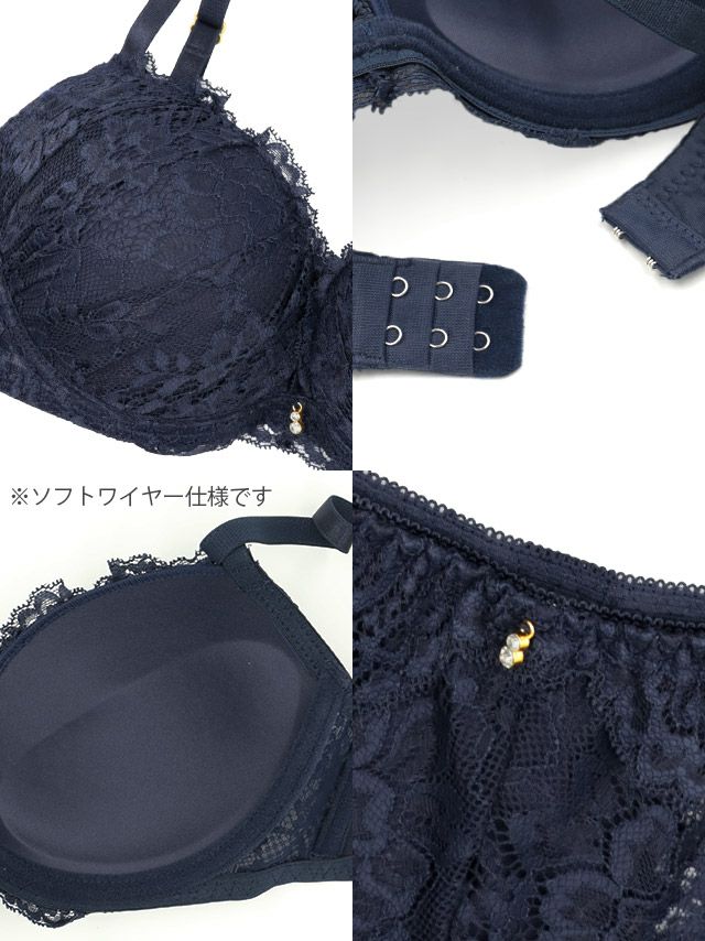 総レースフラワーソフトワイヤーカップブラジャー&ショーツ2点セットのイメージ画像3