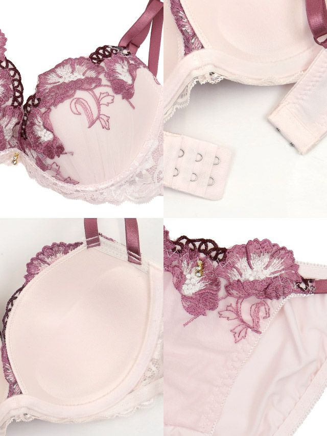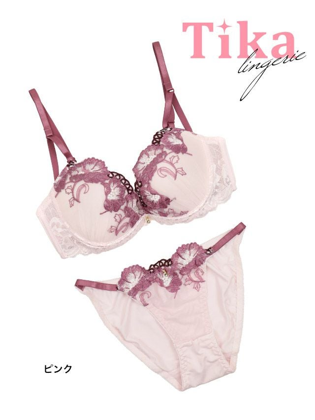 男ウケも狙えるピンクランジェリー♡ [勝負下着] エレガントフラワー刺繍 リボン レース ワイヤーカップ ブラジャー ショーツ 2点セット