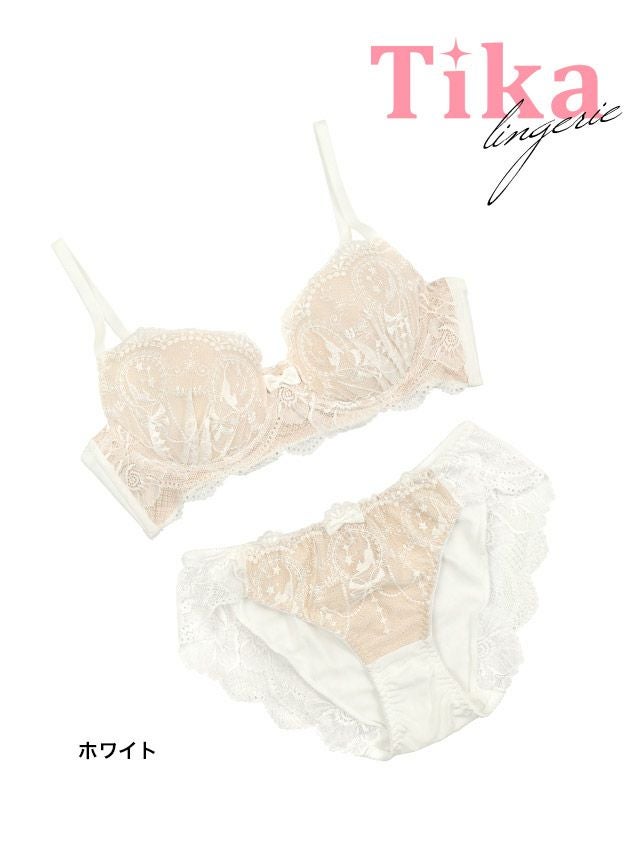 ランジェリー ヌーディー ノスタルジック 刺繍 レース ブラック 白 脇高 ブラジャー ショーツ ランジェリー 下着 2点セットのカラー詳細