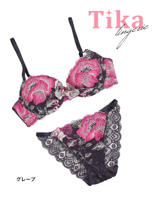 ゴールドチャーム付きエレガントフローラル刺繍脇高カップブラジャー&ショーツ2点セットのカラー詳細