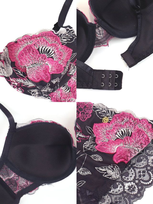 ゴールドチャーム付きエレガントフローラル刺繍脇高カップブラジャー&ショーツ2点セットのイメージ画像2