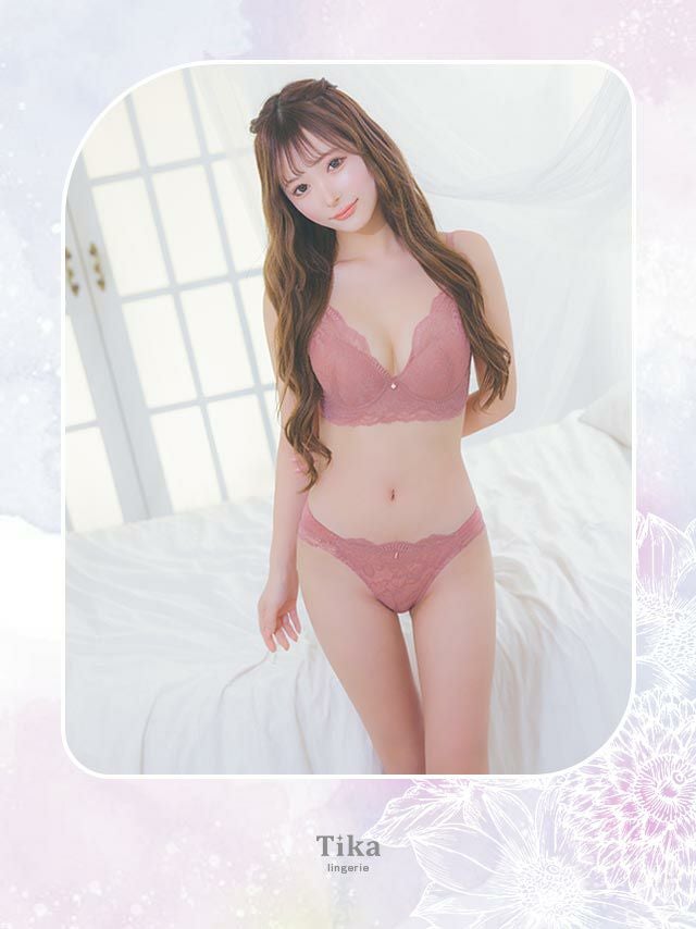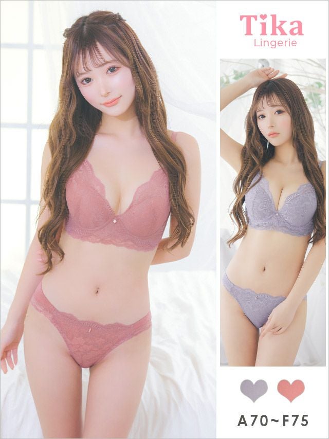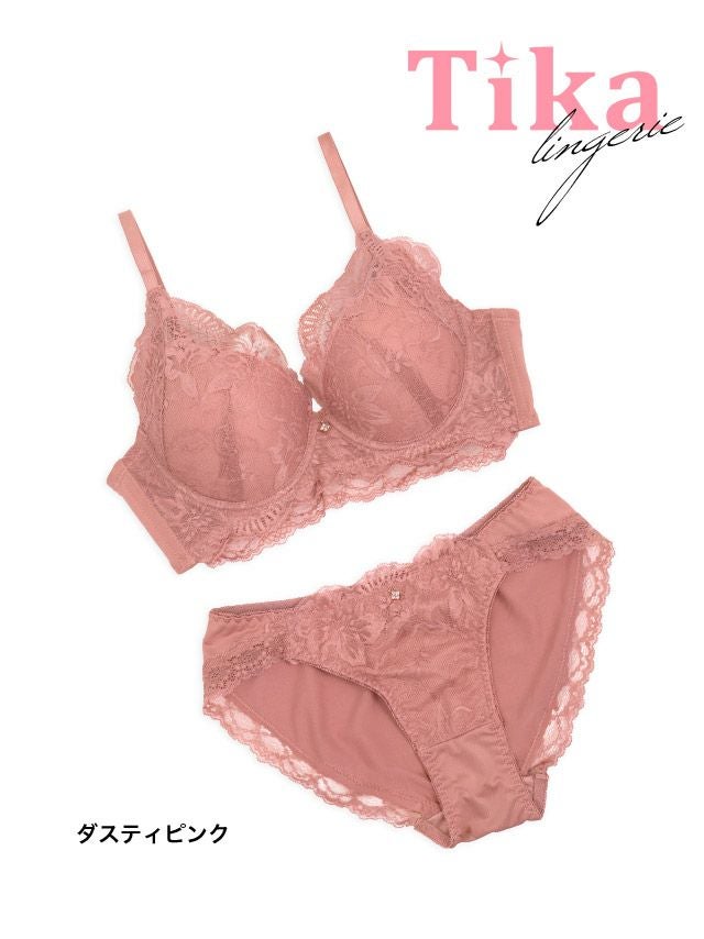 5. [勝負下着] フェミニンフラワーレースビジュー付き脇高カップブラジャー&ショーツ2点セット