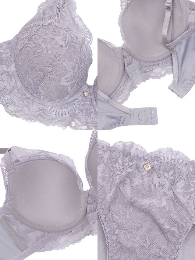 フェミニンフラワーレースビジュー付き脇高カップブラジャー&ショーツ2点セットトのイメージ画像3
