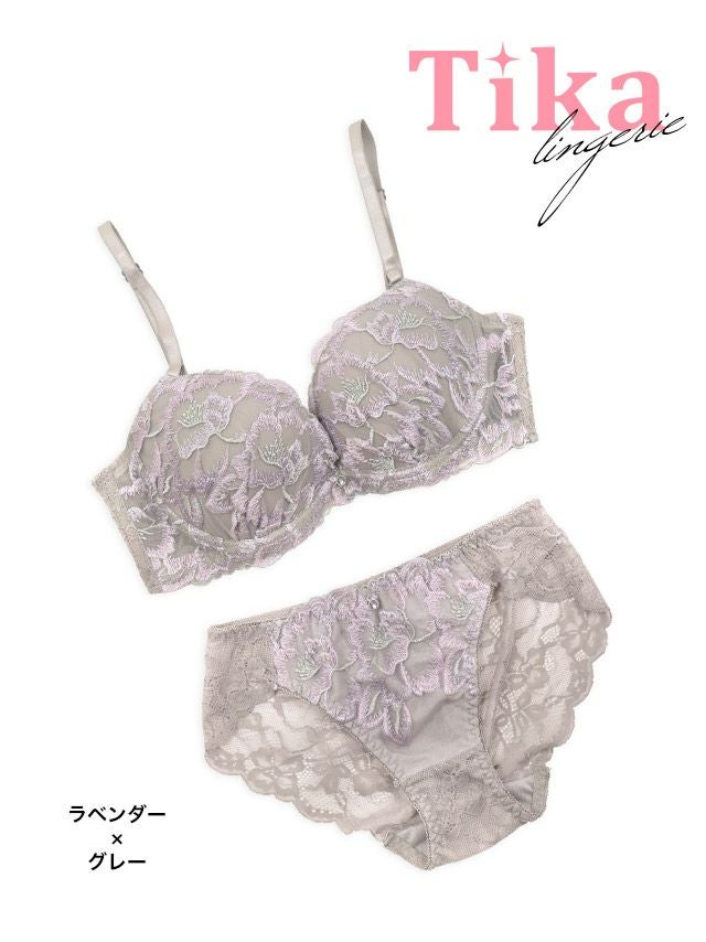 素肌を華やかに彩る♪ [勝負下着] フローラル刺繍ビジュー脇高カップブラジャー&ショーツ2点セット