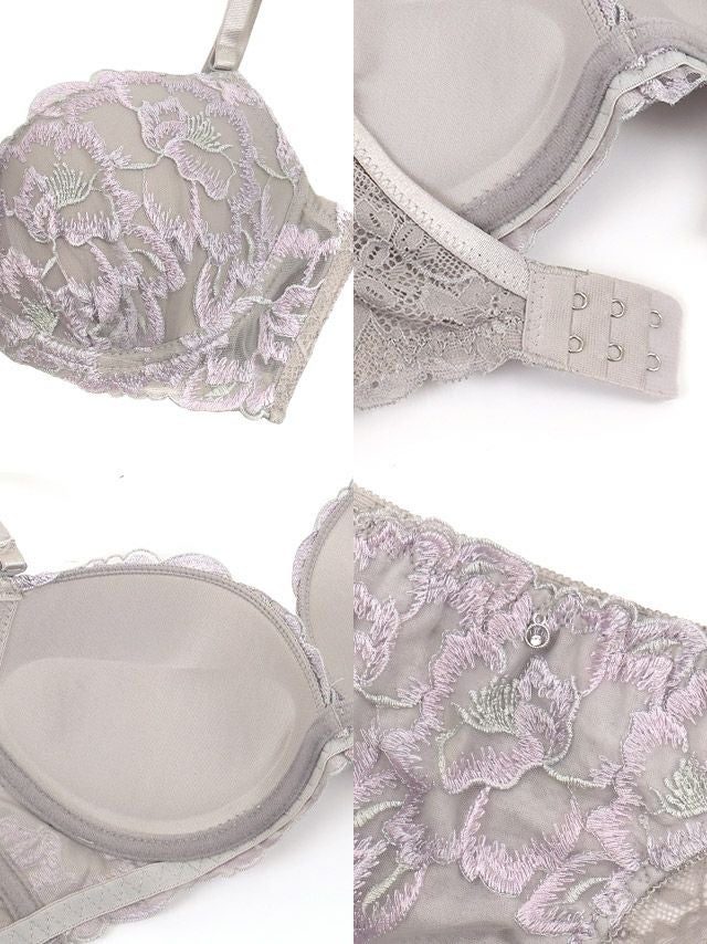 フローラル刺繍ビジュー脇高カップブラジャー&ショーツ2点セットの詳細画像