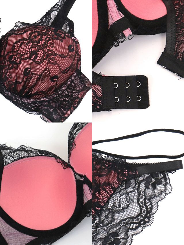 ブラックフラワーレーストッピングビジュー脇高カップブラジャー&ショーツ2点セットのカラー詳細