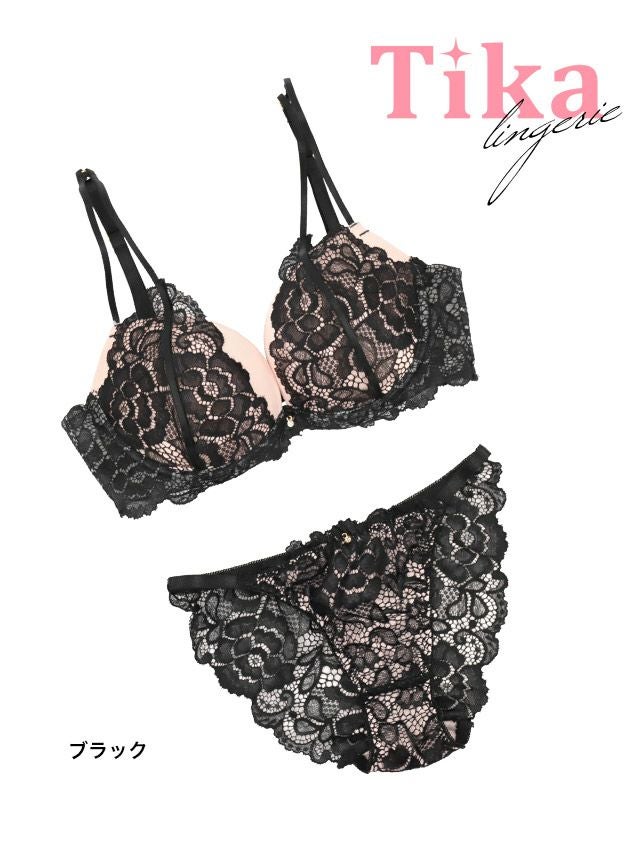 身に纏うだけで小悪魔女子に♪ [勝負下着] スカラップフラワーレースレイヤード脇高フルカップブラジャー&ショーツ2点セット