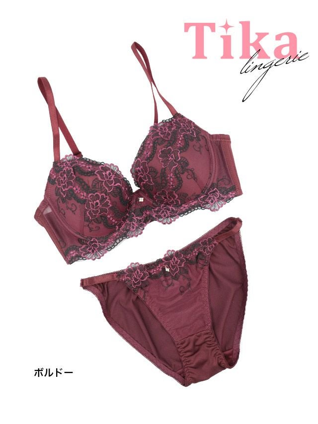 エオリエンタル刺繍脇高カップブラジャー&ショーツ2点セットの詳細画像