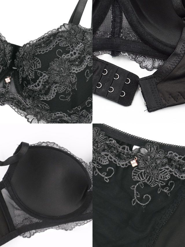 オリエンタル刺繍デザイン脇高カップブラジャー&ショーツ2点セットの詳細画像