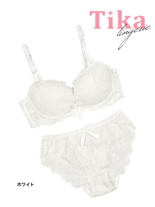 清楚で可愛い純白ランジェリー♪ [勝負下着] ラブリーレースリボン脇高カップブラジャー&ショーツ2点セット