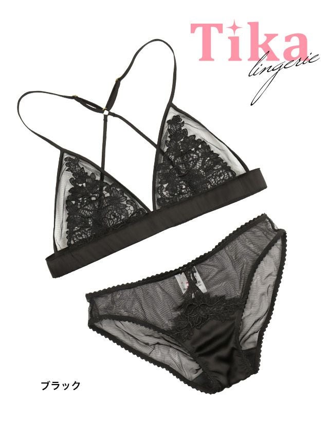 シアー刺繍レースブラジャー&ショーツSEXYランジェリー2点セットのフロントバック