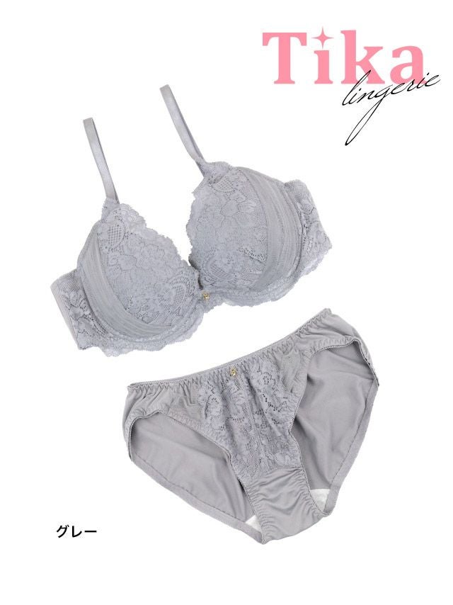 素肌に溶け込む淡いグレーレースとチュールを組みわせた