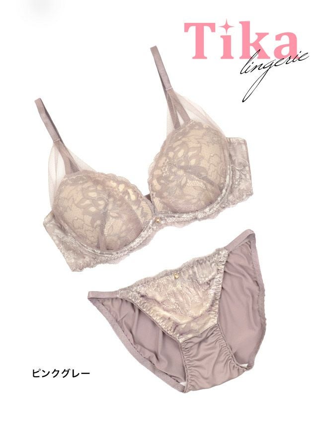 シアーベールデザインエレガントレースカップブラジャー&ショーツ2点セットの詳細画像