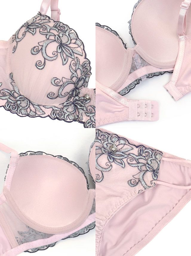 ゴージャス刺繍ビジュー脇高フルカップブラジャー&ショーツ2点セットのフロントバック
