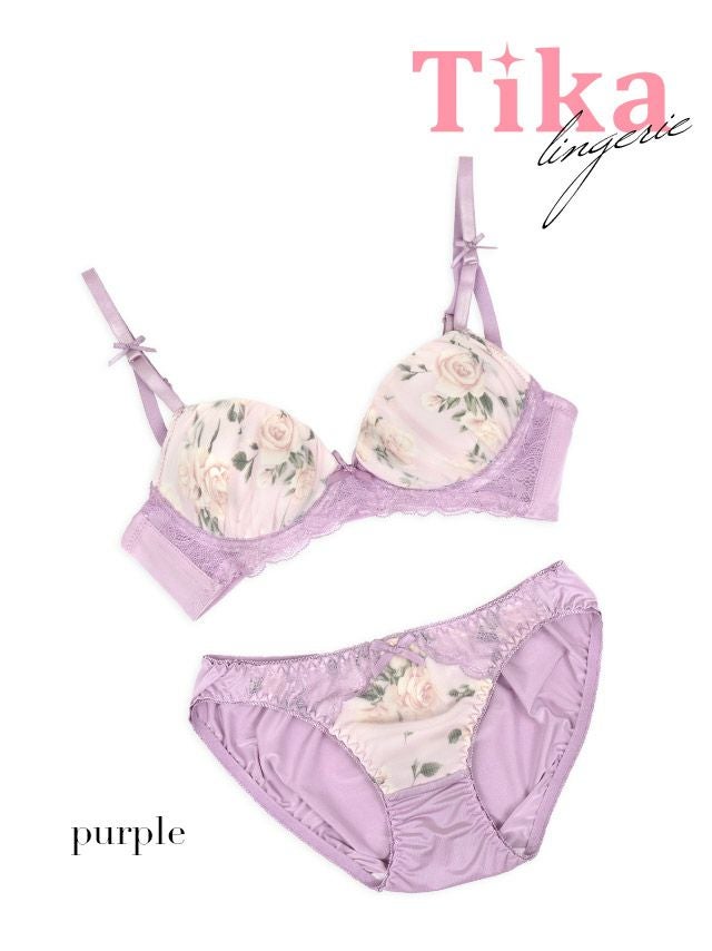 ブラとショーツにふんわりローズのお花が描かれた