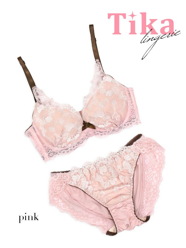 ナチュラルフラワーリボンカップブラジャー&ショーツ2点セットの詳細画像1