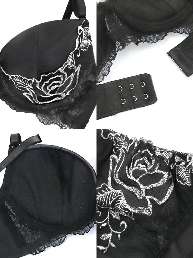 エレガントフラワー刺繍サテンカップブラジャー&ショーツ2点セットのイメージ画像3