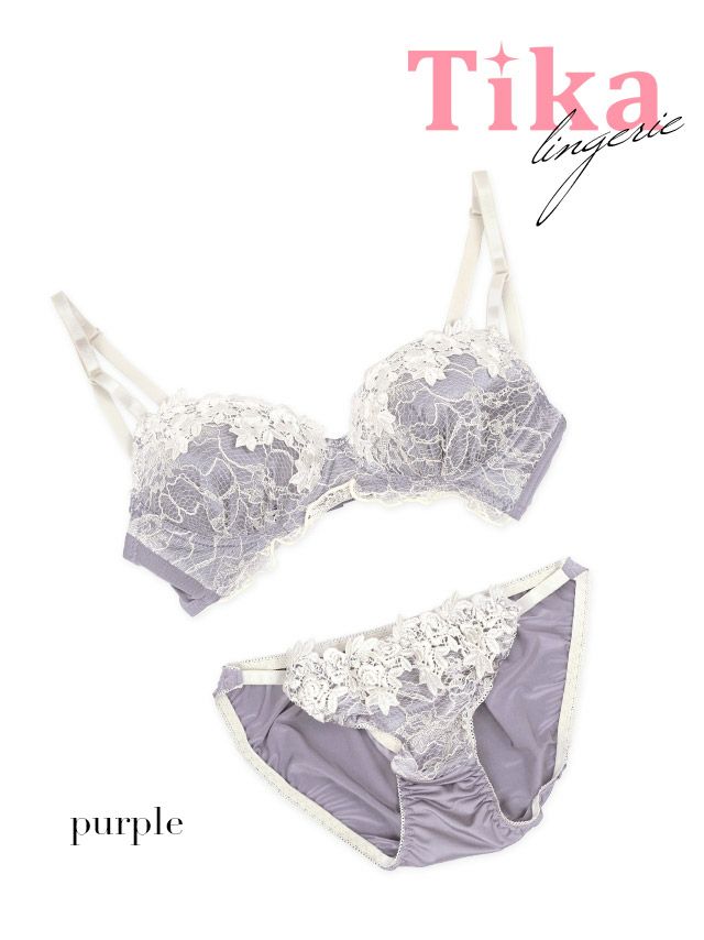 3. [勝負下着] ホワイトフラワー刺繍レースノンワイヤーカップブラジャー&ショーツ2点セット