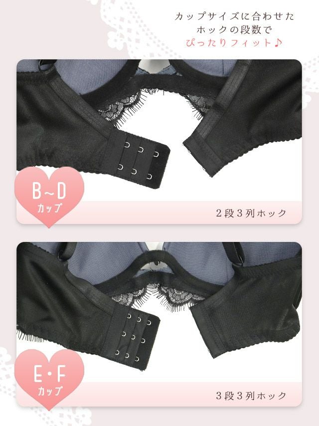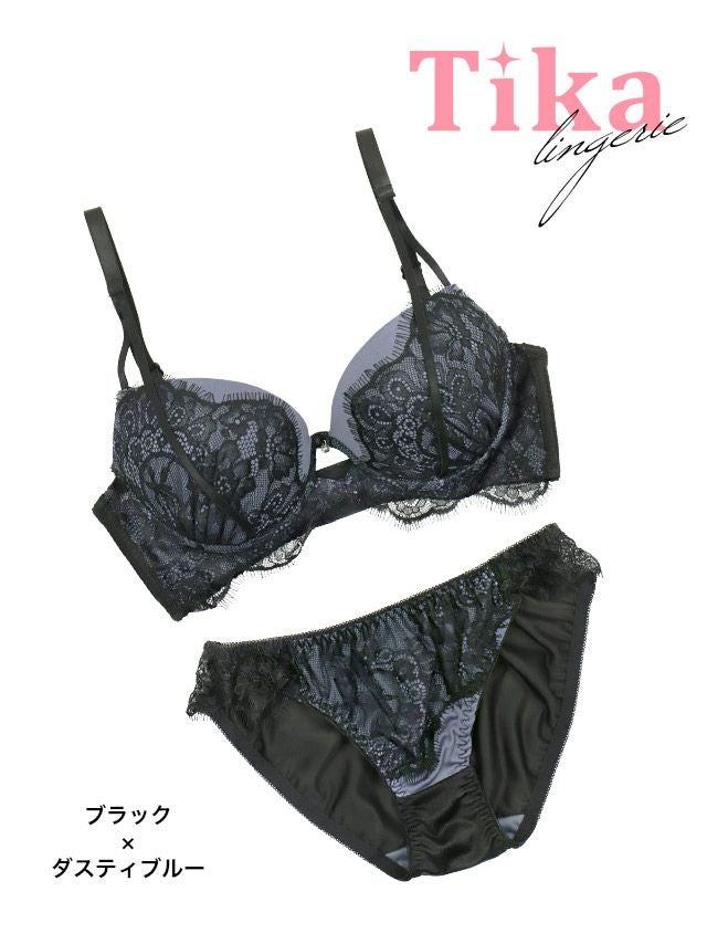 サテン ブラックスカラップレース レイヤード ワイヤー ブラジャー ショーツ 2点セットのカラー詳細