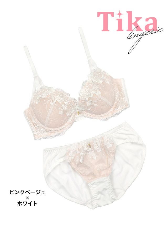 清楚で可愛いフェミニンランジェリー♡ [勝負下着] ランジェリー 下着 ヌーディー フラワー レース 刺繍 白 脇高 ブラジャー ショーツ 2点セット