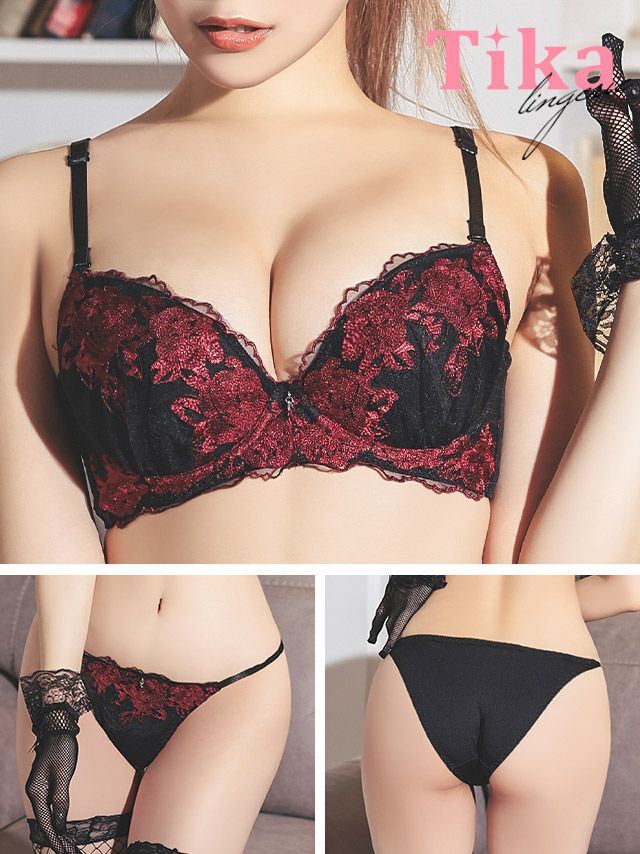勝負下着について 人から見えないところも可愛くありたい。 可愛いお気に入りの下着をつけているだけで気分がいい! でも、つけ心地は大事…だからこそ、ご自身にあった下着を選んでもらいたい♪ 自分に合った下着の選び方を知れば、つけ心地も気分も最高に。 【サイズの測り方】 まずはやっぱりサイズを正確に知ること! お店で計測してもらうのが一番ですが、ブラサイズは自分でも測れます。 一番しっくりくる手持ちのブラを着用し、トップサイズとアンダーサイズを測ってください。 背中を丸めてしまったりメジャーがずれてしまってると 5cmほど計測値がずれてしまうのでご注意くださいね! 【ブラの選び方】 サイズがわかれば、次は自分のお胸に合ったブラの選び方! 小さめバストの方は1/2カップブラや3/4カップブラがおすすめ◎ 谷間を作りやすく、土台がしっかりとした作りが多いのでバストを支える・持ち上げる力に優れています。 このタイプのブラはストラップが取り外せることが多いので 首回りが開いた服やオフショルを着用する時にも便利です。 大きめバストの方は、フルカップブラがおすすめ◎ 他の下着に比べ、ストラップ自体が中央に寄って作られていることが多いので ストラップがしっかりと胸を持ち上げてくれ、綺麗に見えることがポイントです。 また、横のラインもすっきり見せてくれる&さらに安定して お胸を綺麗に見せてくれる脇高タイプのブラを選ぶことをおすすめします! とにかくお胸が柔らかい!という方は4/5カップブラをおすすめします。 柔らかめのお胸は下垂しやすい傾向にあるので、 3/4カップブラとフルカップブラのどちらの特徴も持ち合わせた 4/5カップブラでお胸をぐっと持ち上げ、しっかりと綺麗に見せるのが◎ 脇のはみ肉が気になる方は3/4カップブラがおすすめ! 3/4カップブラの構造上、脇部分のお肉をバストへ しっかり引き上げ止める力に優れているブラです。 特に斜め下から中央に寄せる機能に優れているので 谷間もしっかりと作りやすくすっきりとお胸をメイクしてくれます◎ それぞれのブラの特徴を知ったあとは、ご自身のお好きなデザインを選ぶだけ♪ Tika(ティカ)のブラ&ショーツセットは可愛いデザインのものから エロくてセクシーなレースデザインのエロ下着まで各種取り揃えております。 中にはTバックもついた3点セットの商品も◎ サイズもAカップ、Bカップ、Cカップ、Dカップ、Eカップまで豊富に展開中♪ きっとあなたにあった、気分の上がる下着が見つかります!